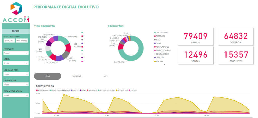En Accom, al tener un modelo end to end, integramos la data del entorno digital y el mundo de las ventas. Con Power BI personalizamos nuestros paneles e informes: